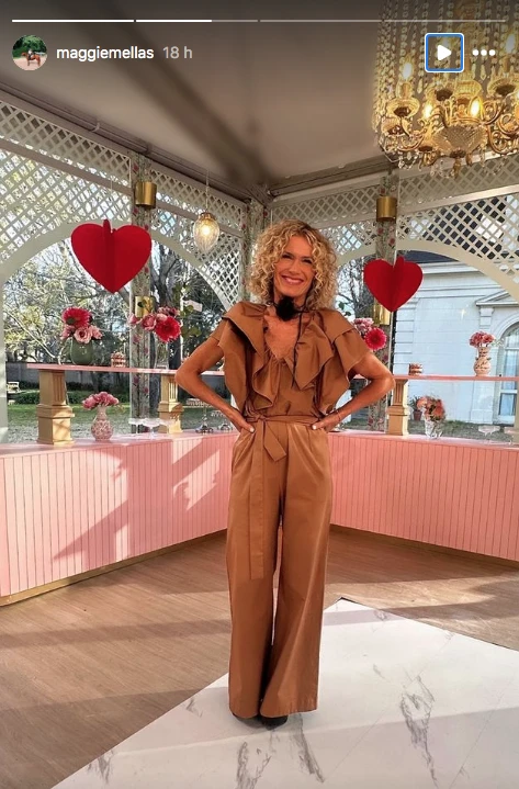 Para el último programa televisado, la cocinera triunfó con un hermoso look compuesto por un mono de color canela, un tono tendencia del verano 2025. En concreto se trata de una pieza con escote en V y volados XL, además tiene bolsillos y un lazo desmontable para destacar la cintura.