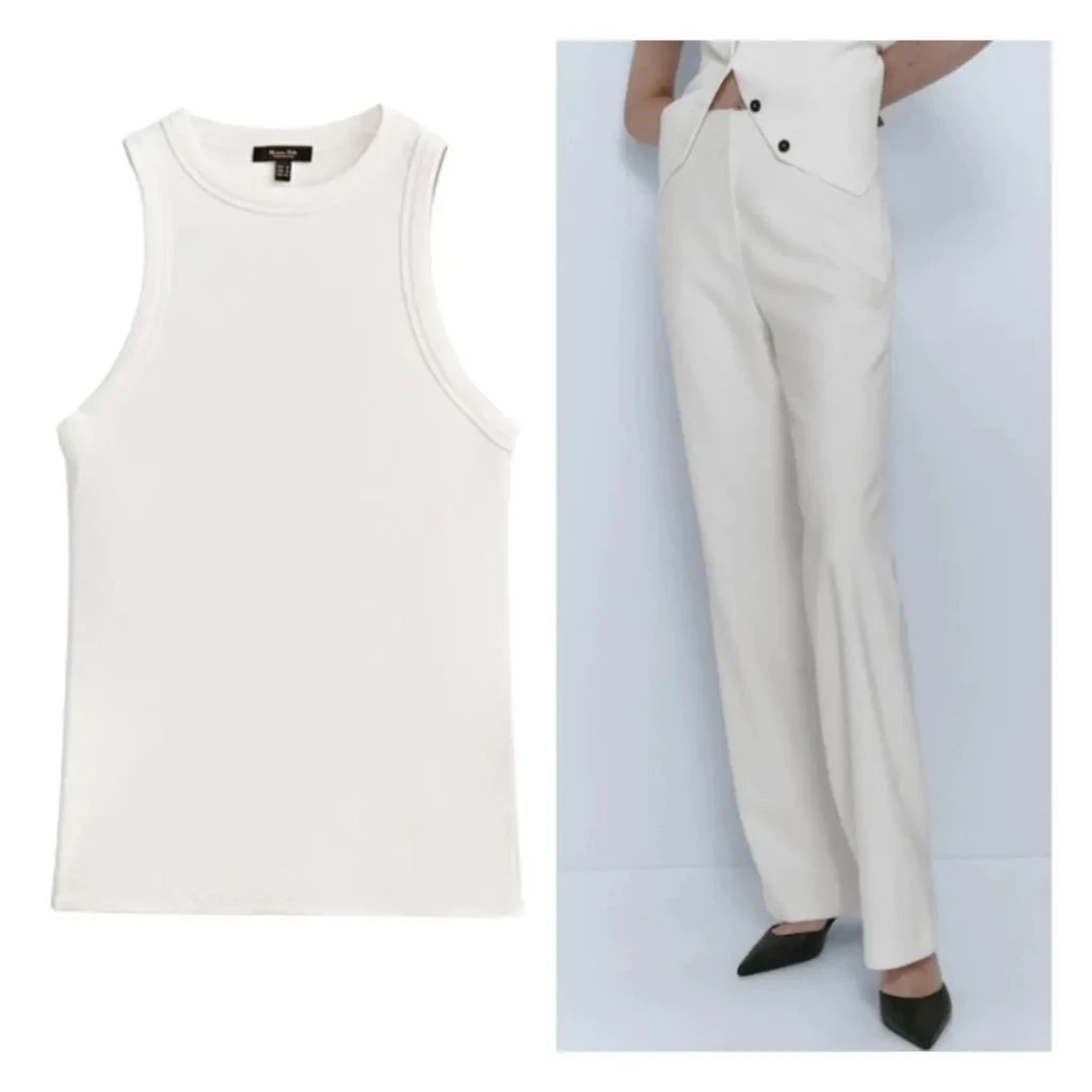 Es por eso que eligió un blazer de lino color azul real "Melania", de Max Mara, una musculosa de cuello halter color crema de la nueva colección de Massimo Dutti, con pantalones de crepe al tono. Complementó con aros de Fahoma Madrid.