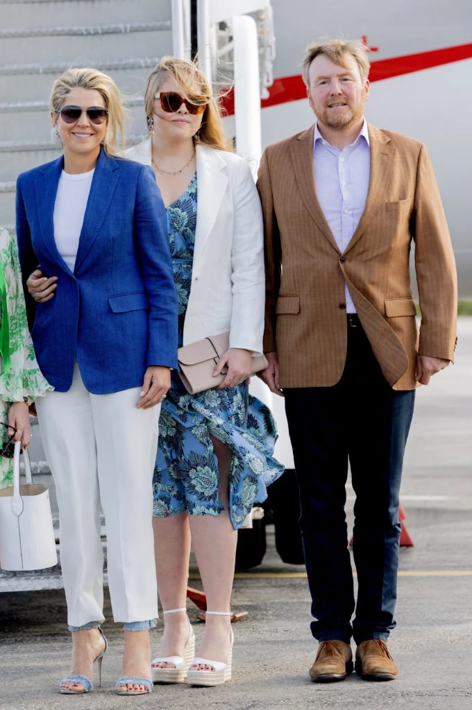 Es por eso que, para descender del avión que tomó junto al rey Guillermo y a la princesa Amalia (para su presentación en el Caribe), la royal lució estas originales sandalias de Gianvito Rossi. Se trata del modelo "Lola", y están confeccionadas en tela de jean azul desgastado.
