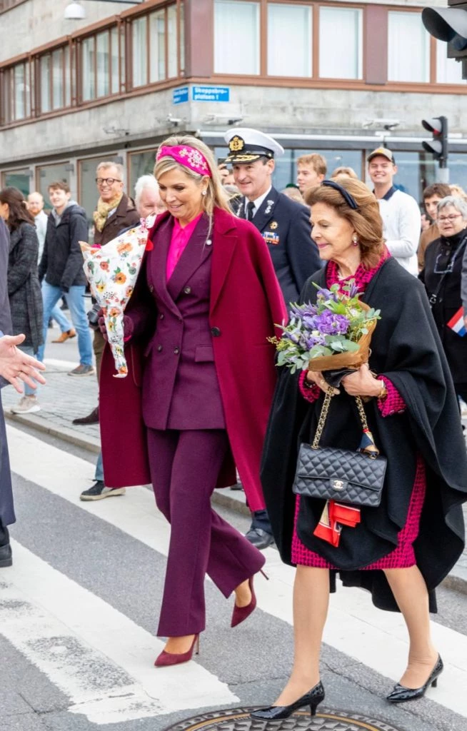 El estilo de Máxima es muy significativo y personal, siempre elige looks llenos de color y elegancia. Durante su Visita Oficial a Suecia estrenó un traje sastre en color bordó de Zara, compuesto por saco cruzado y muy entallado y pantalón recto a tono. Como toque diferente le sumó una camisa de color fucsia, muy de tendencia, que elevó su outfit.