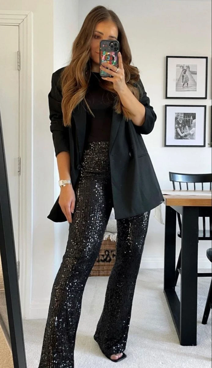 Si hablamos de los pantalones de lentejuelas, podemos decir que son un básico esencial de la temporada de fiestas y que nos hará brillar en la noche.