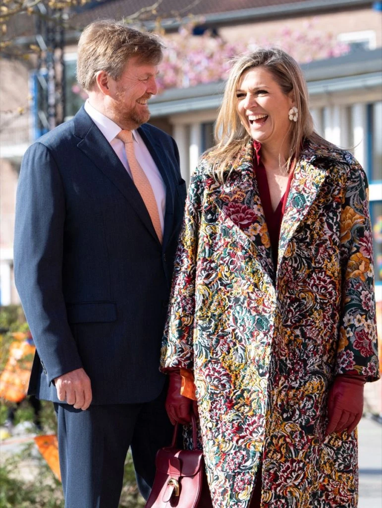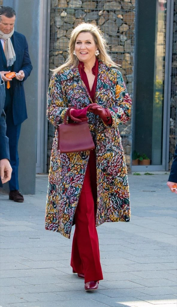 Con un look atrevido y lleno de color, la reina de Holanda volvió a apostar al tapado de flores de Oscar de la Renta que ya usó en varias oportunidades.
