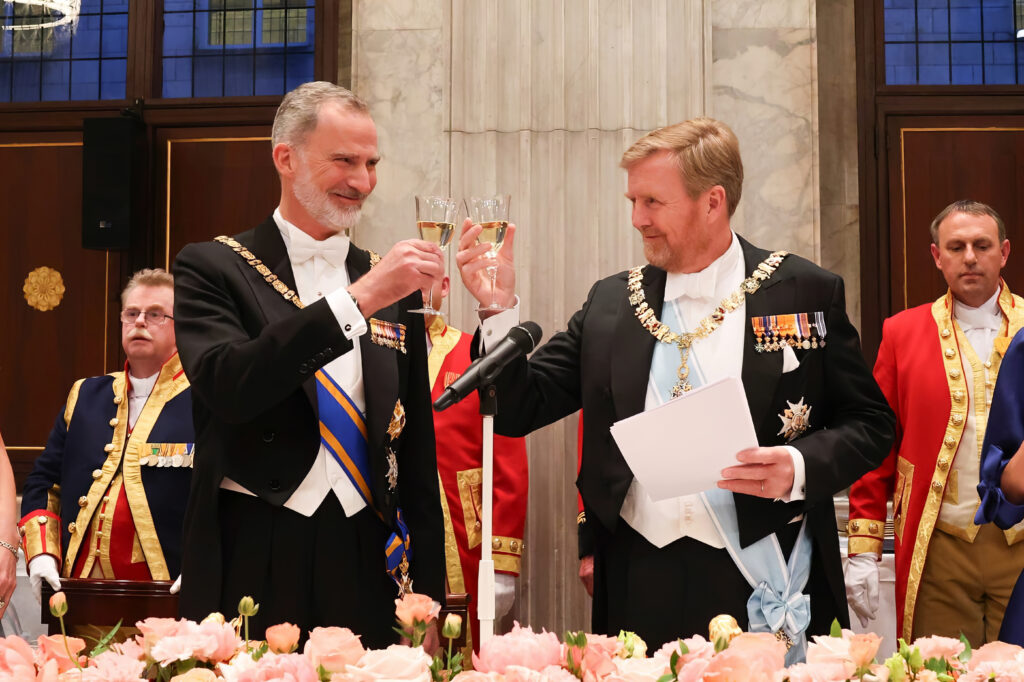 Este miércoles, los reyes Felipe y Letizia de España comenzaron una gira histórica por Países Bajos. Allí fueron muy bien recibidos por Máxima y Guillermo Alejandro, y si bien se vieron durante el día, el miércoles terminó con un banquete de Estado en el que las reinas brillaron con sus atuendos. A continuación te contamos todos los detalles de lo que lucieron.