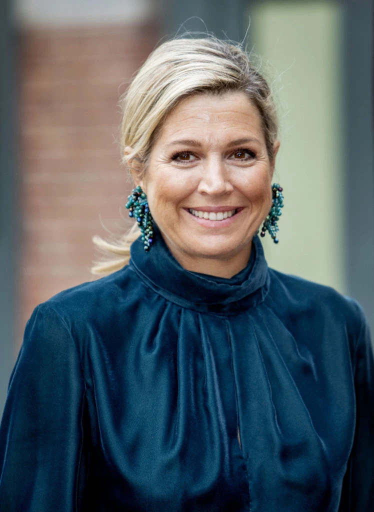 En tanto que la reina Máxima de Países Bajos eligió una blusa con mucha personalidad para asistir a la apertura del Programa Nacional de Conocimiento e Innovación de la Salud en La Haya.