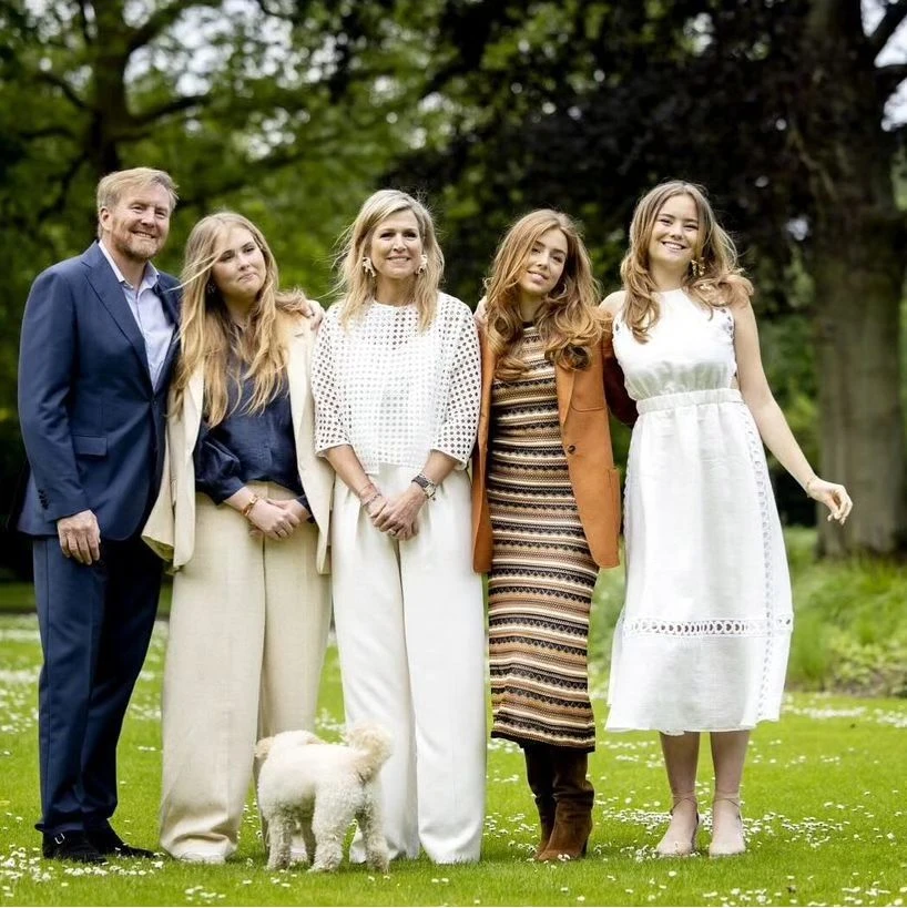 En cuanto a su cabello, Zorreguieta eligió llevarlo suelto y al natural, con una raya hacia el costado, conservando su formalidad. Este look total white había sido utilizado durante una fotografía familiar, en la que apareció con su esposo el rey Guillermo y sus hijas Amalia, Alexia y Ariane. El retrato había sido tomado en su residencia ubicada en Huis ten Bosch.