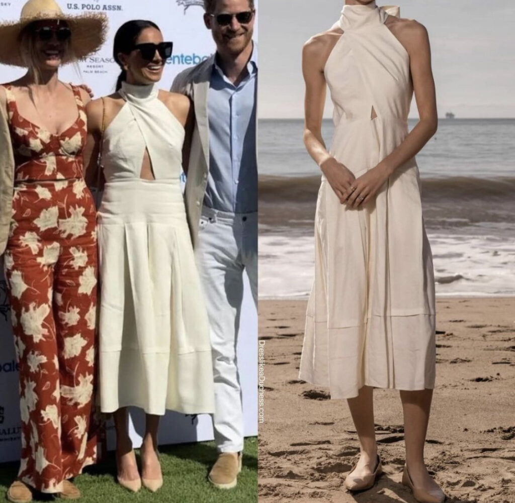 La protagonista de Suits usó un vestido de lino blanco largo midi y cuello cruzado de la firma Heidi Merrick. Lo combinó con stilettos nude, cartera Valentino y lentes oversize negros. Un look súper elegante para asistir a un partido de polo. Así, se consagró entre las mejores vestidas del evento.