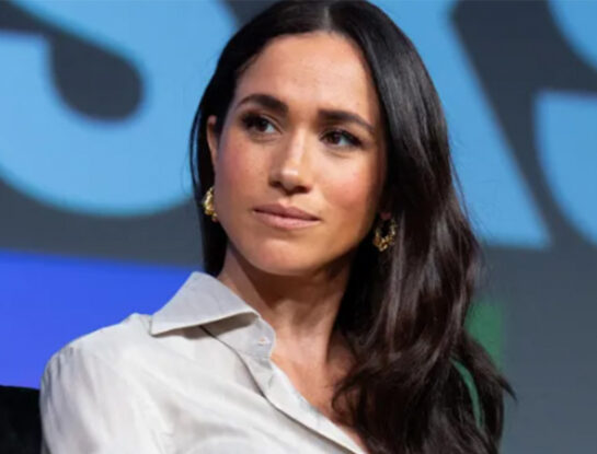 La duquesa lo combinó con unos pantalones negros anchos y unos zapatos de suela baja. En cuanto a su beauty look, la pareja del príncipe Harry optó por llevar el cabellos suelto con algunas ondas y el make up estuvo enfocado principalmente en su mirada: máscara para pestañas, sombras oscuras y delineado negro.
