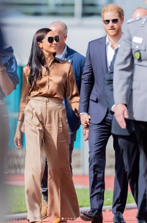 Meghan se destaca con sus look inspirados en el lujo silencioso y ahora, en el quinto día en Alemania, se vistió con el tono de la temporada: la paleta de los tostados y los colores tierra.
