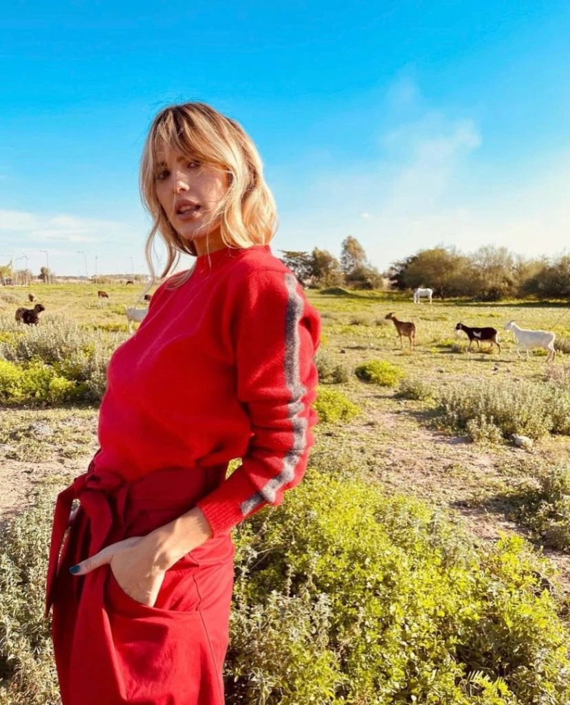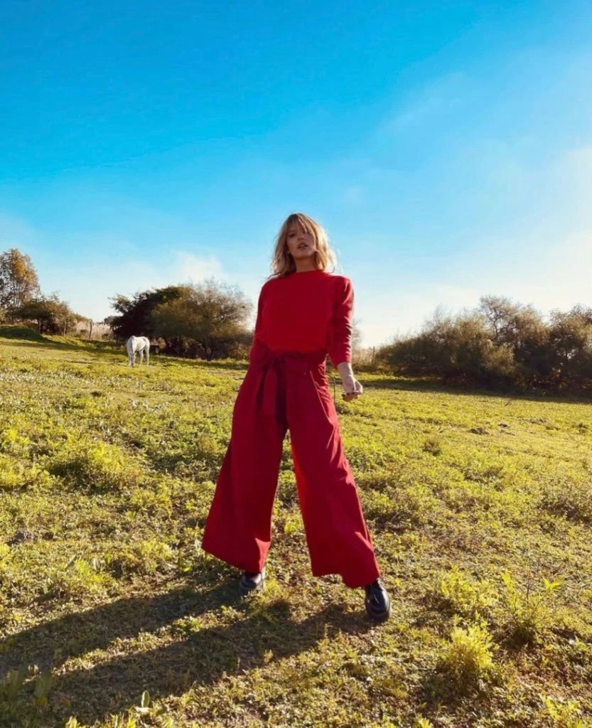 Mery del cerrro apostó a un look súper moderno de canchero de pantalón paper bag y sweater en colorado. La modelo es una chica muy fashionista y sabe, perfectamente, que este es el tono que dominará la temporada invierno 2021.