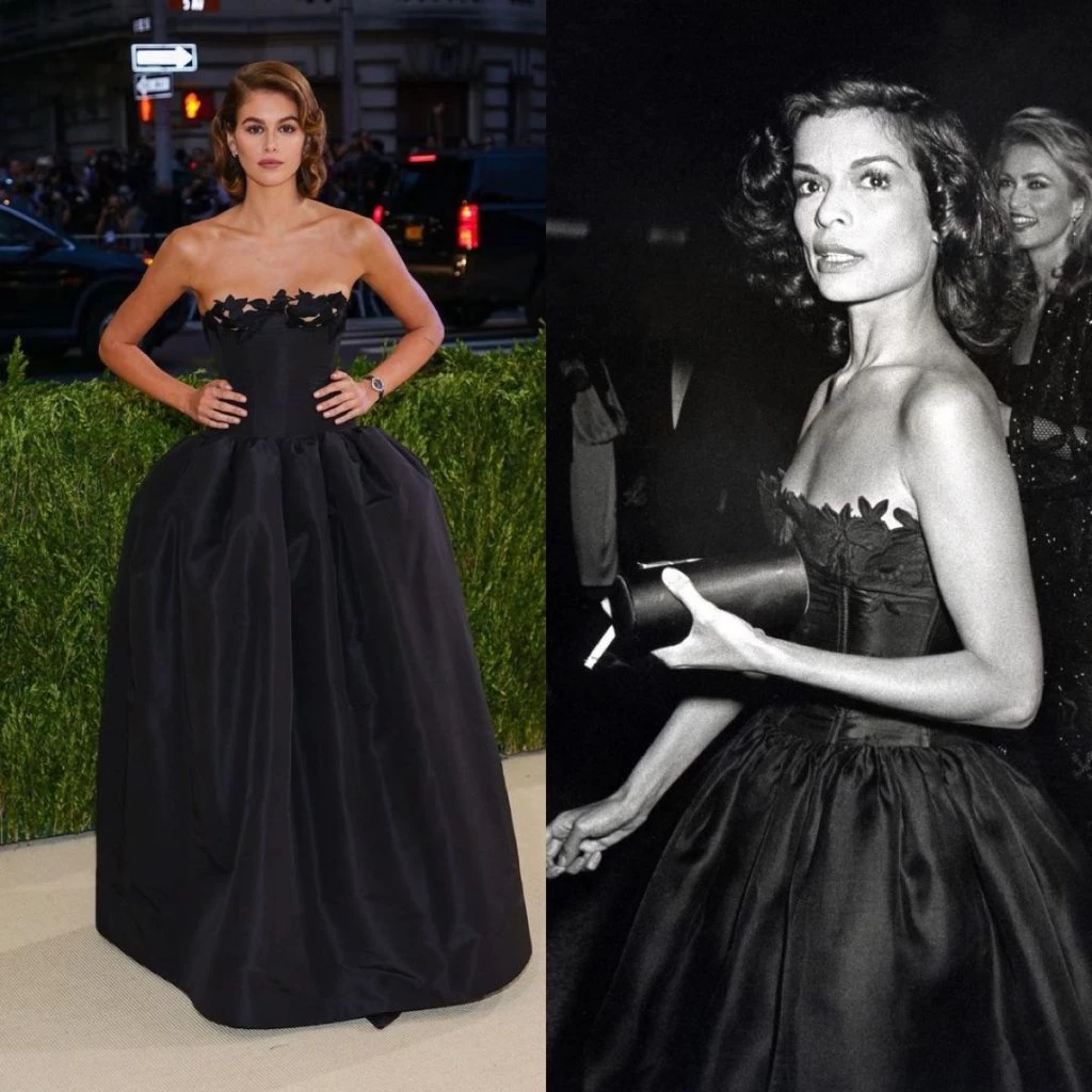 En el año 1981, Bianca Jagger deslumbró en el Met Gala con el mismo vestido que años después Kaia decidió llevar con una versión reversionada del escote.