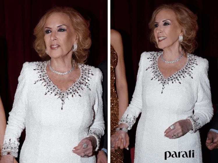 Para la ocasión, Mirtha confió en el diseñador Claudio Cosano, quien creó un vestido laminado blanco con bordados de cristales, strass y mini paillettes plateadas. Una pieza con impronta de alta costura que combinó sofisticación y brillo, ideal para un evento que celebró el glamour argentino.