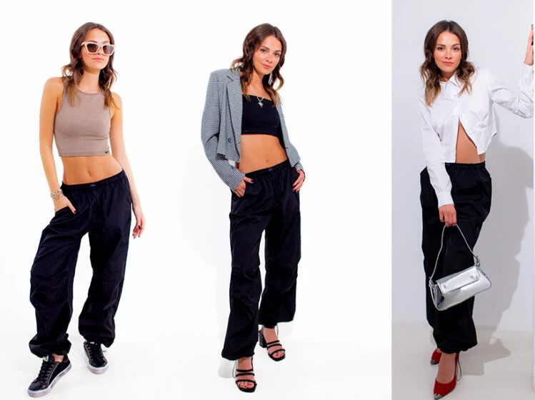 Parachute, significa en inglés, paracaídas. Inspirados en la aviación con elementos de la estética militar (los colores neutros o los bolsillos cargo), de tiro moderadamente bajo (justo en la cadera) y pierna ancha con un elástico en el ruedo creando efecto globo, así son estos pantalones tendencia. Son el nuevo ítem de moda, con esencia sporty, que instaló Bella Hadid y Hailey Bieber.