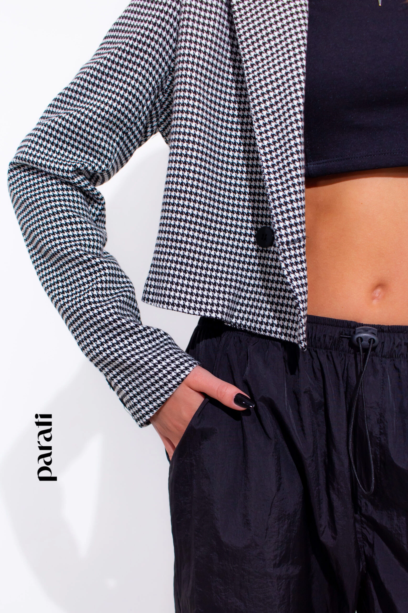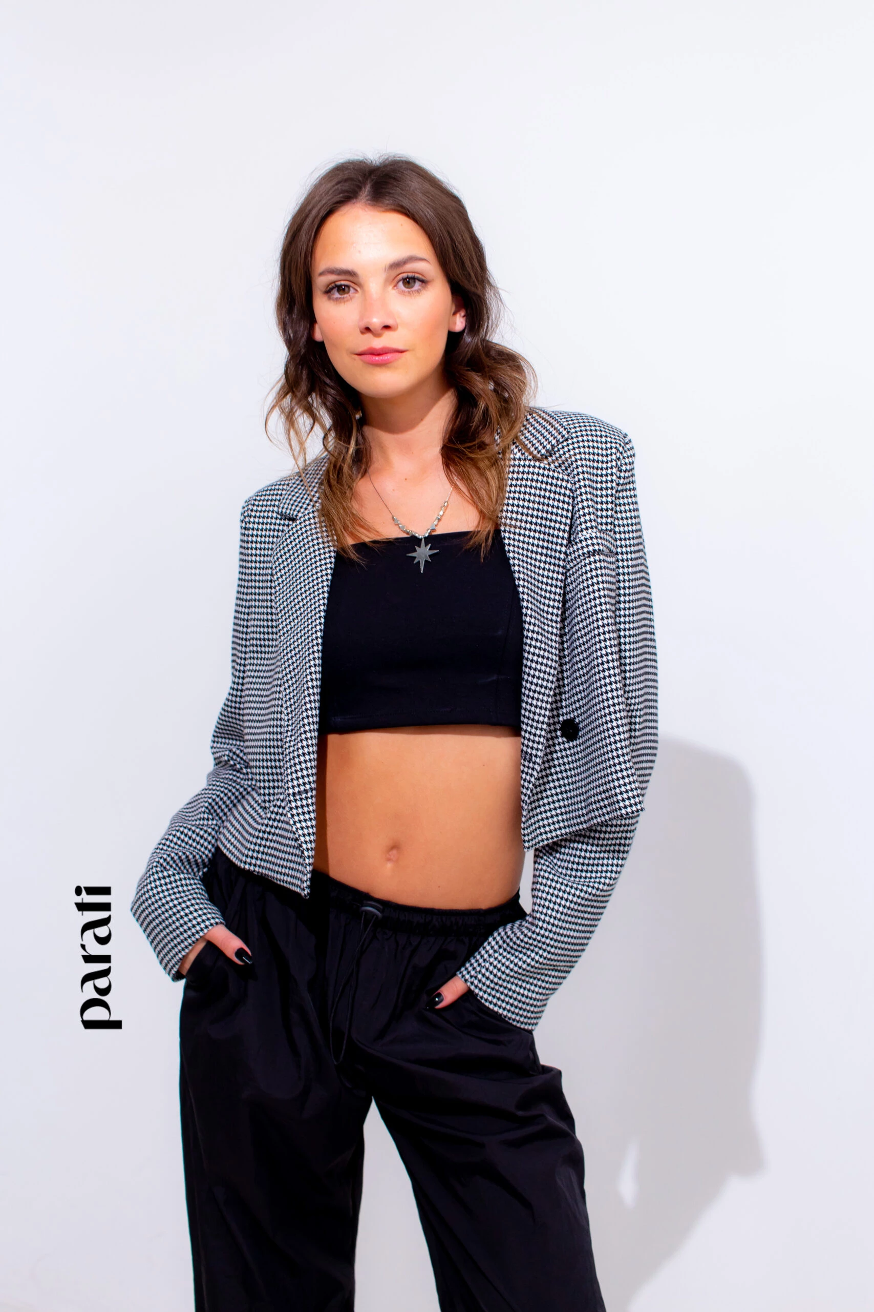 Dónde conseguirlo: Blazer corto y top de algodón (Renner, @renner_ar), pantalón parachute (Ver, @verapasionadas), sandalias con brillos (Puli D. Shoes, @pulidshoes) y collar con dije (Isadora, @isadorastyle).
