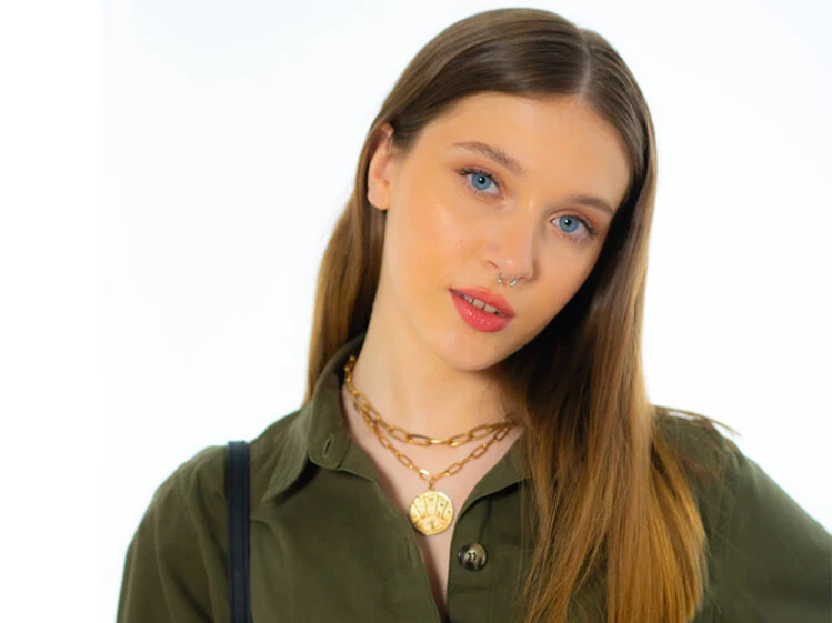 Dónde conseguirla: Campera verde (Swa-mi, @swamioficial), remerón de algodón (Las Pepas, @laspepasinst), anteojos de sol (Hardem, @hardem_official), texanas de gamuza (Di Zavatti, @dizavatti_) y cadena (Isadora, @isadorastyle).