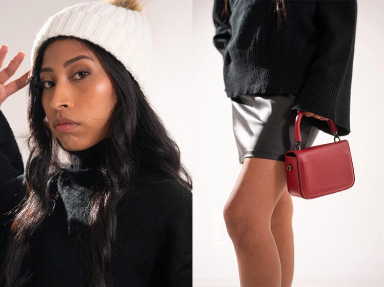 Para una salida nocturna, enfrentá el frío con una polera Xl y un gorro tejido. Sumale una cartera de color para darle el toque cool al look.