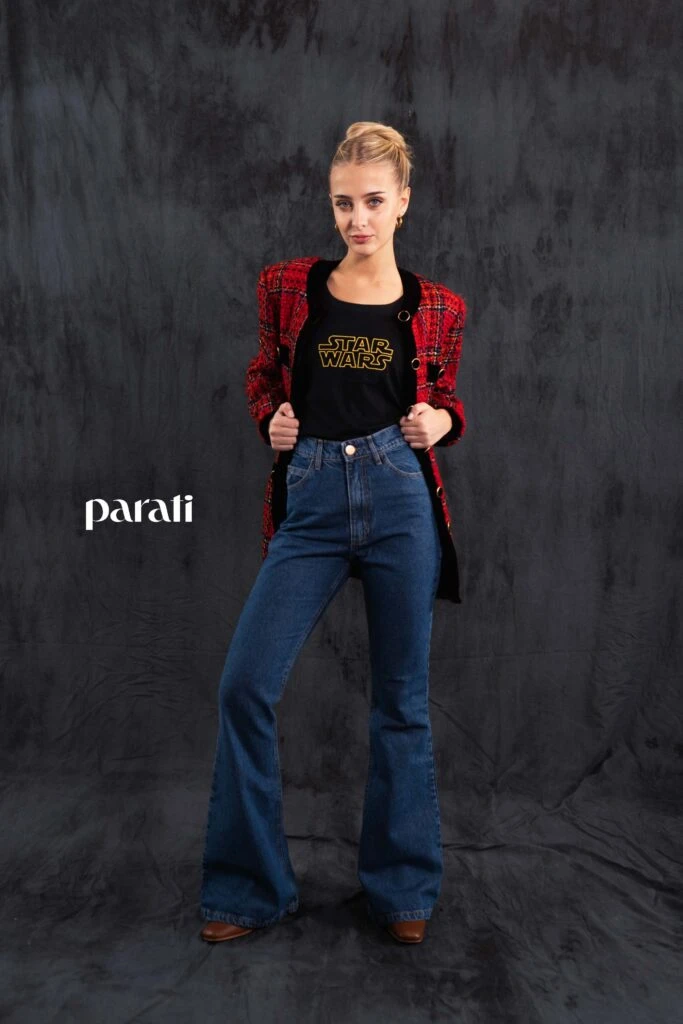 Blazer con textura (Vintage Reciclado, @vintagereciclado), remera de algodón con estampa (Swa-mi, @swamioficial), jean Oxford (RAD, @somos_rad), botas de cuero con taco (Fiskyn, @fiskynzapatos) y aros redondos (Todomoda, @todomodaoficial).