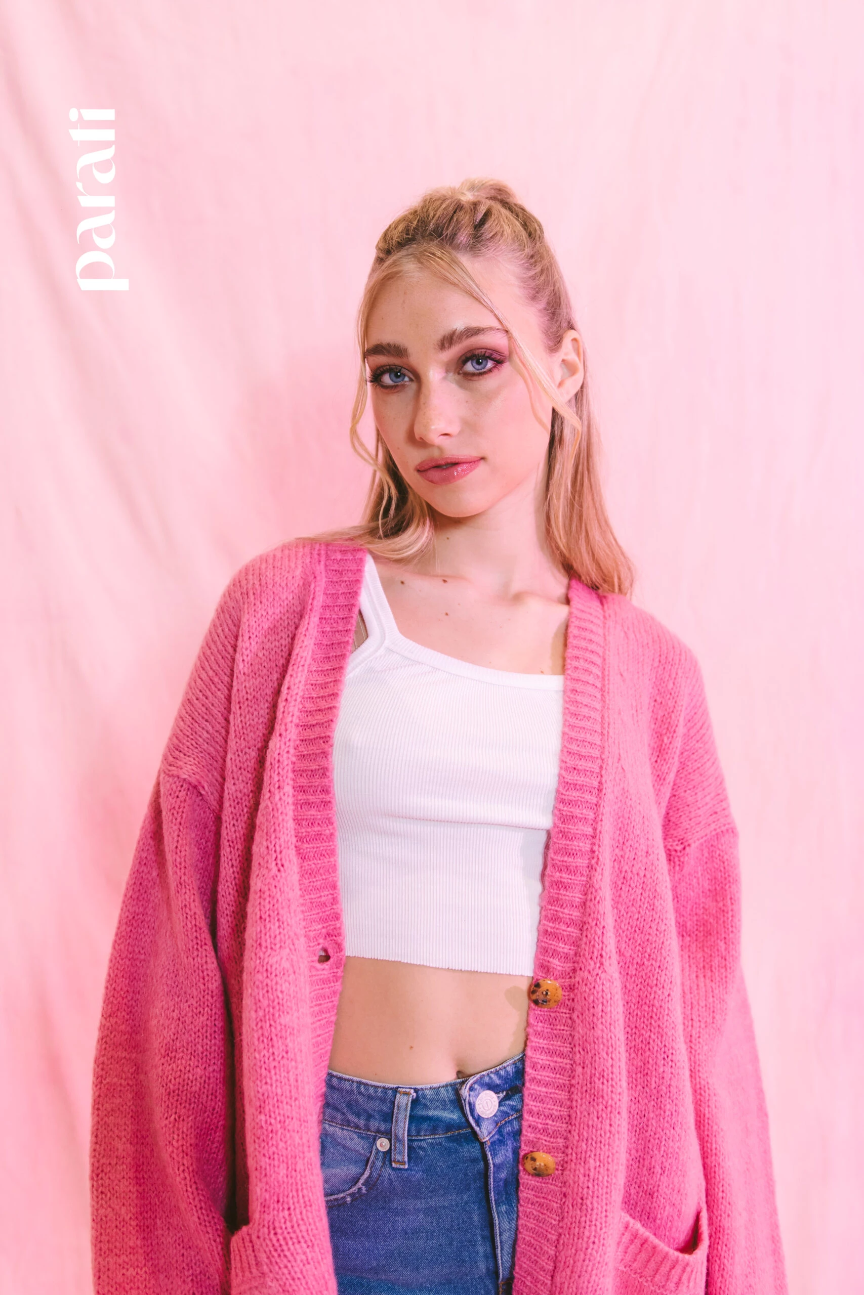 Dónde conseguirlo: Cárdigan tejido, musculosa de rib y jean recto (The Ann Wagners, @theannwagners) y zapatillas de cuero ecológido (Rud, @rudshoes).