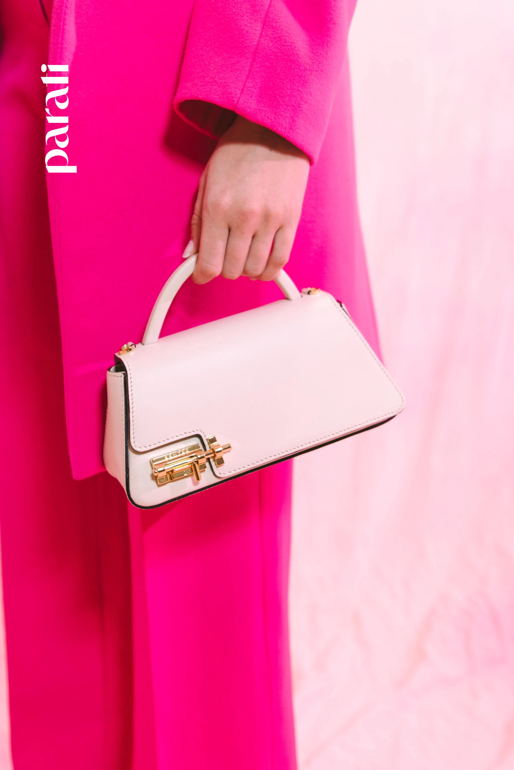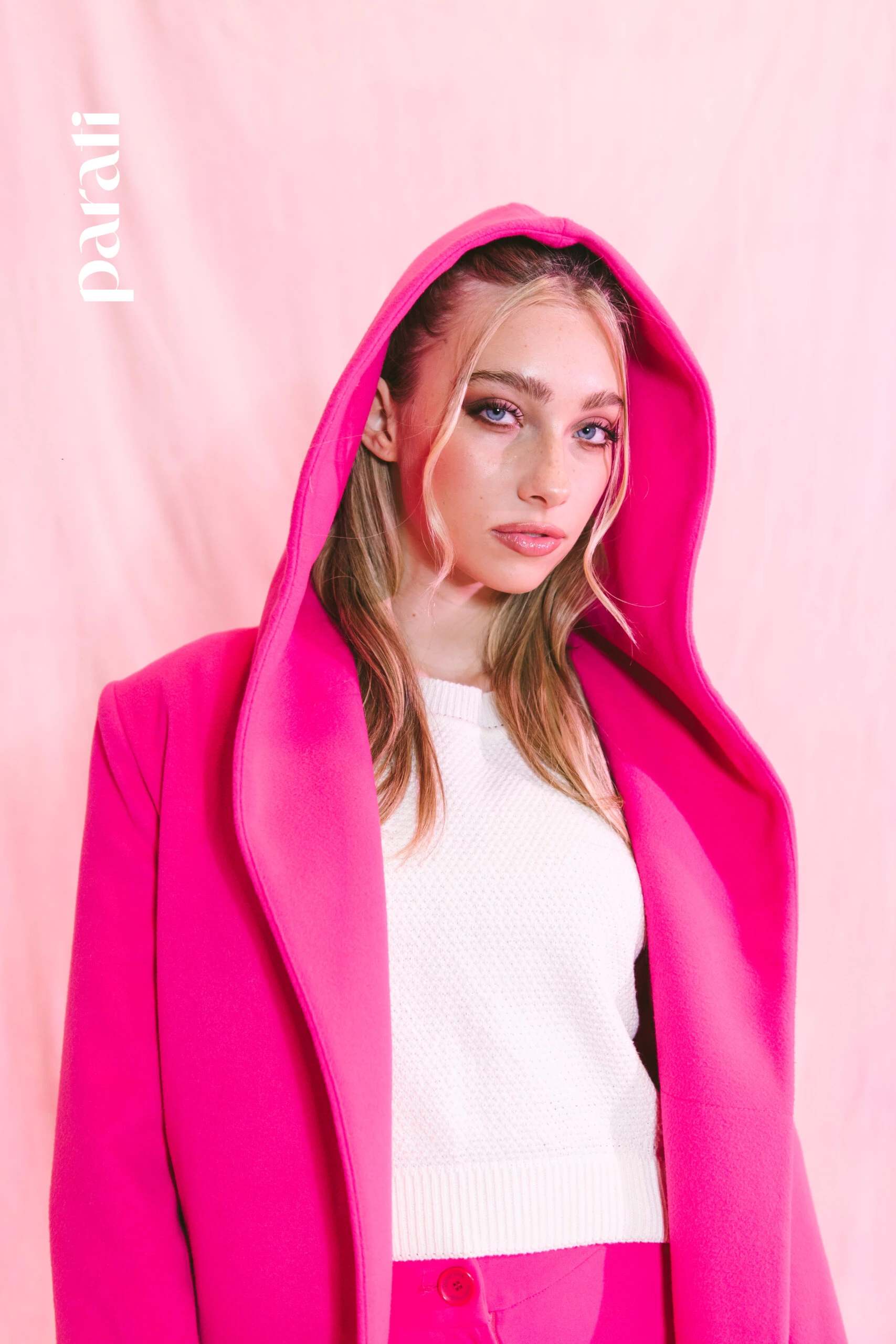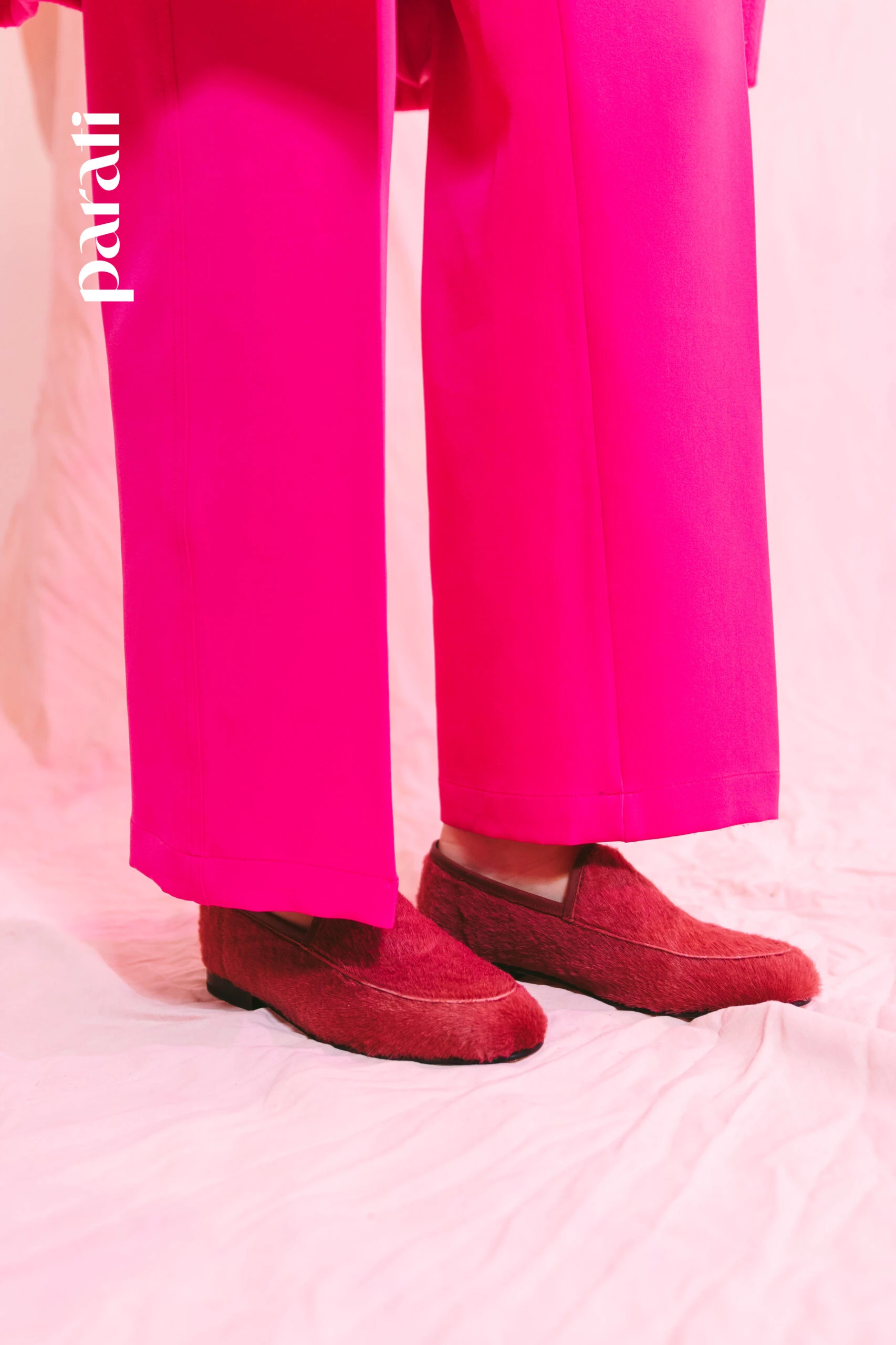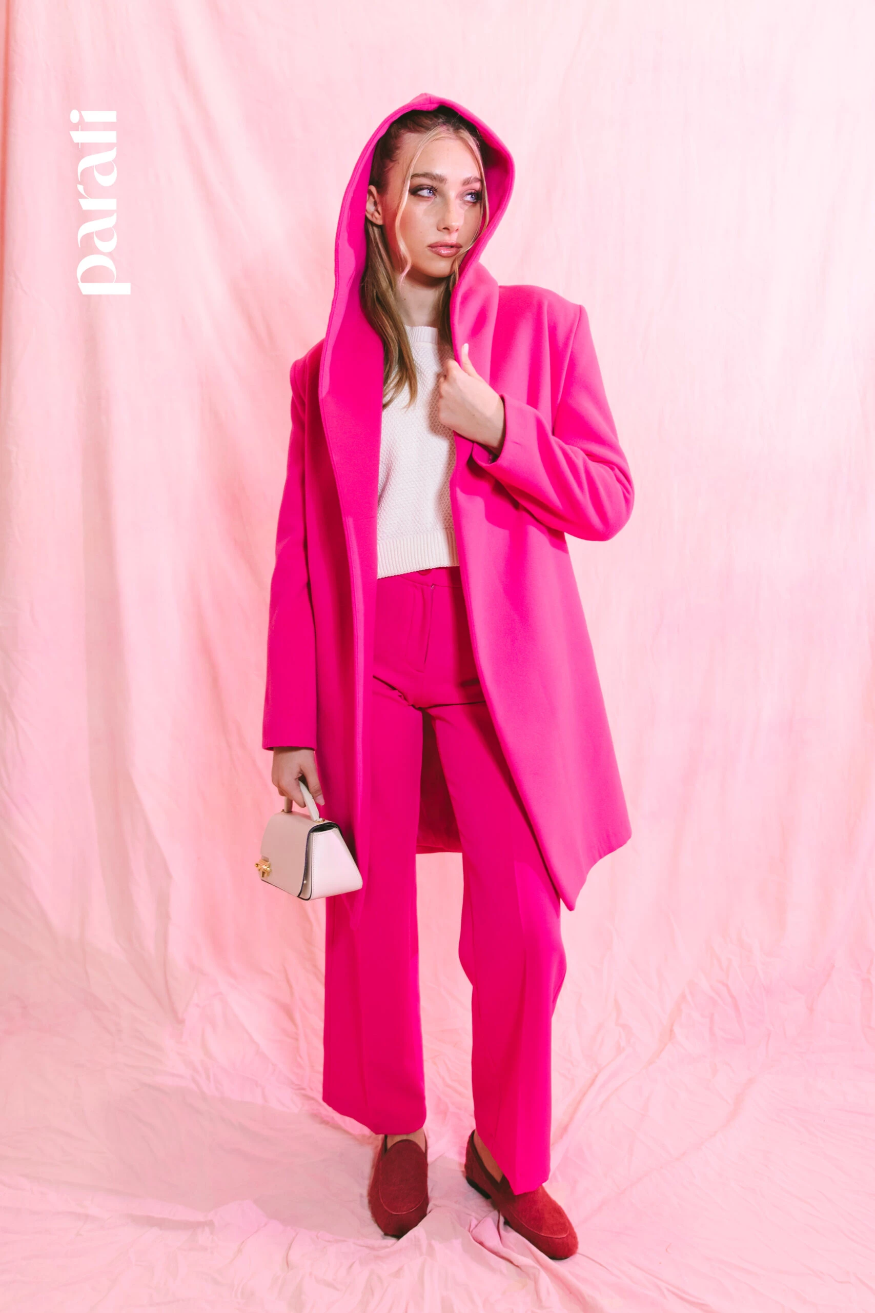 Dónde conseguirlo: Tapado de paño, suéter tejido y pantalón sastrero (Melocotón, @melocotonstyle), mocasines con pelo (Puli D. Shoes, @pulidshoes) y mini bag de cuero (Sentèz, @sentez.oficial).
