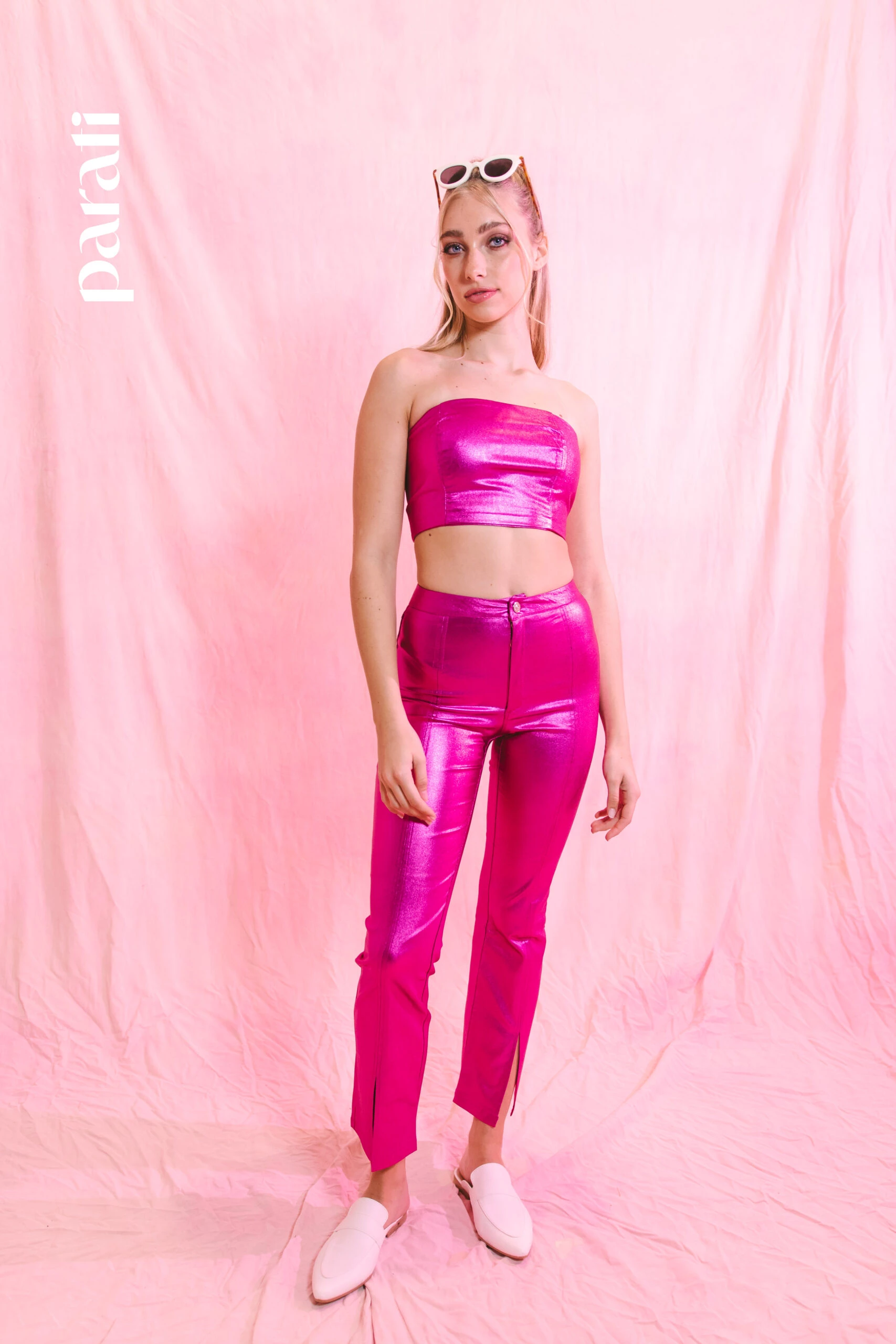 Dónde conseguirlo: Top y pantalón metalizados (Filía, @filiaclothes), zuecos de cuero ecológico (Rud, @rudshoes) y anteojos redondos (Mr. Boho, @mrbohoargentina).