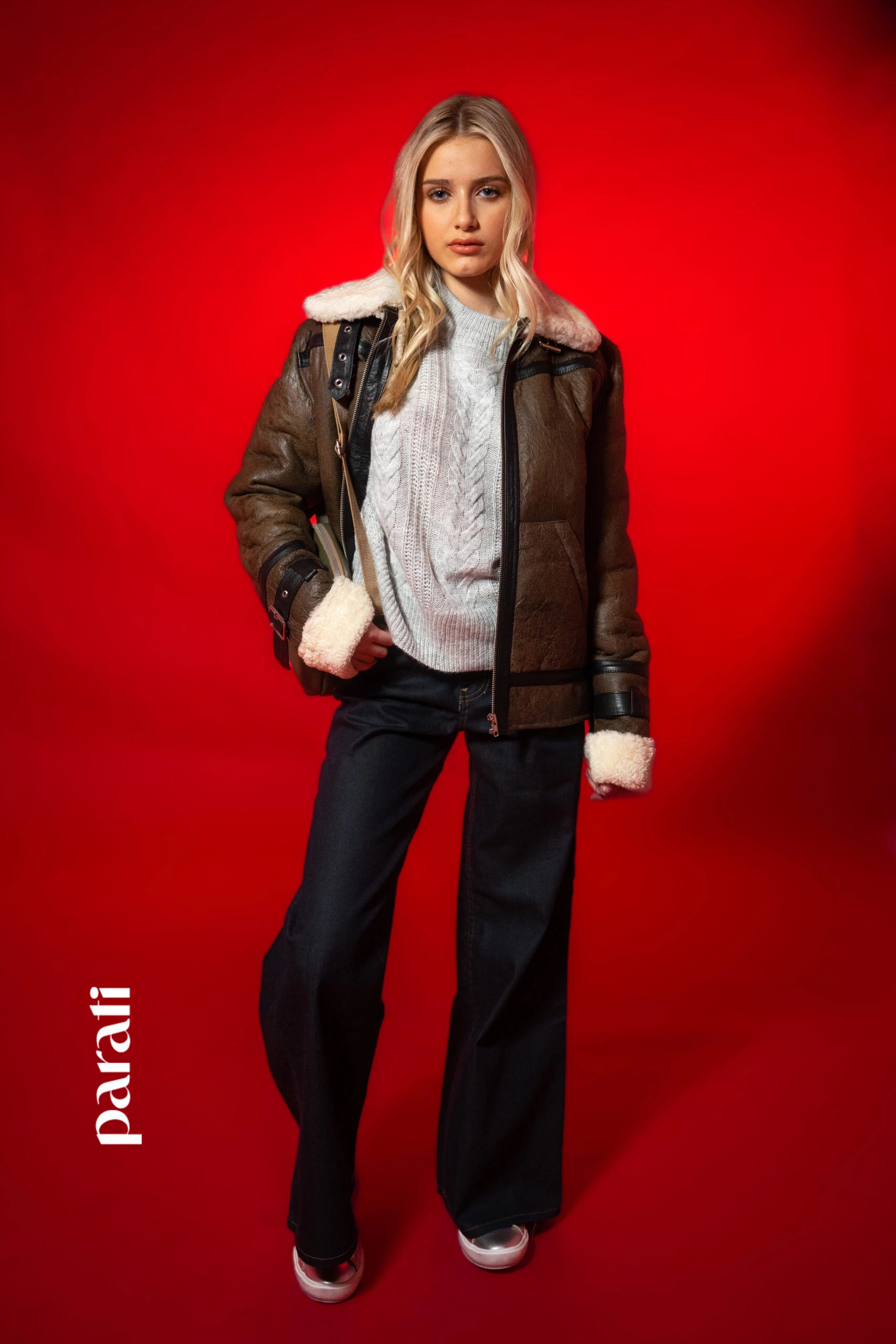 Dónde conseguirlo: Gamulán de cuero (WeStyle, @westyle.oficial), suéter tejido y jean Oxford (Las Pepas, @laspepasinst) y zapatillas de cuero metalizado y mini bag de cuero (Oggi, @oggizapatos).