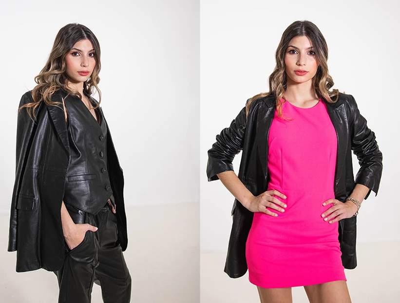 Dónde conseguirlo: Blazer, chaleco y pantalón de cuero (WeStyle, @westyle.oficial) y zapatillas de cuero (Oggi, @oggizapatos).