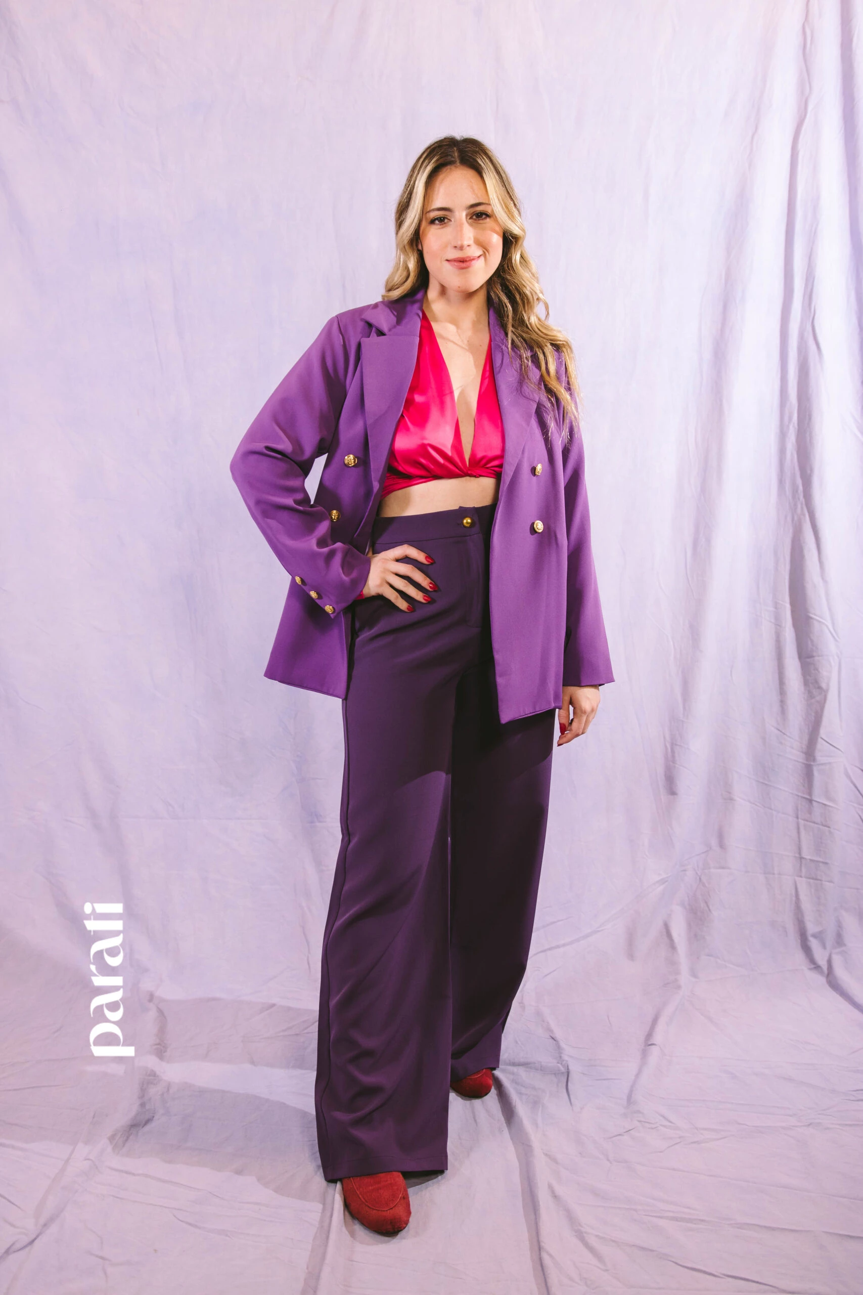 Dónde conseguirlo: Blazer, top de seda y pantalón ancho (Böön, @boon.oficial) y mocasines de pelo (Puli D. Shoes, @pulidshoes).
