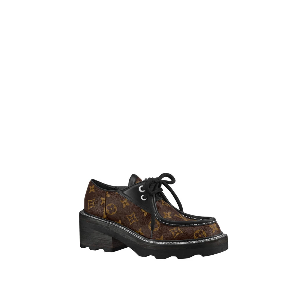 Este es un diseño perfecto masculino / femenino, mostrado por primera vez en la colección Otoño-Invierno 2019. El derbi LV Beaubourg se asienta sobre una suela de plataforma gruesa y gruesa que es engañosamente liviana y está ribeteada con costuras blancas. Su exterior de lona con estampado de monogramas está forrado con neopreno y tiene los mismos cordones que la zapatilla Archlight. Este clásico contemporáneo combina estilo, comodidad y materiales técnicos en un diseño que se adapta a cualquier look.
