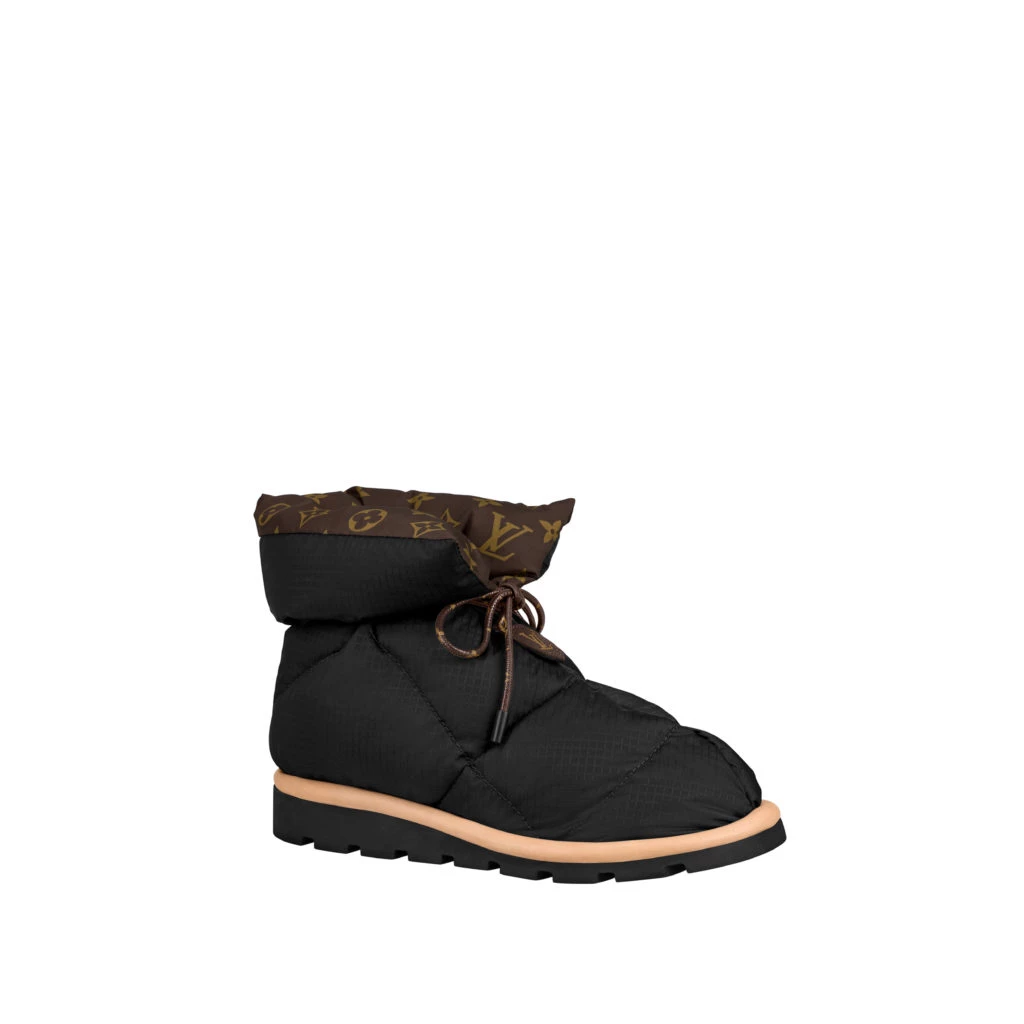 La bota Pillow utiliza ECONYL®, un material único hecho de fibras de nailon 100% recicladas y reciclables, principalmente derivadas de los desechos plásticos que se encuentran en el océano. La bota está disponible en tres colores: negro, caqui y blanco, todos forrados con nailon reciclado con estampado de monogramas. La almohada sigue siendo imprescindible.