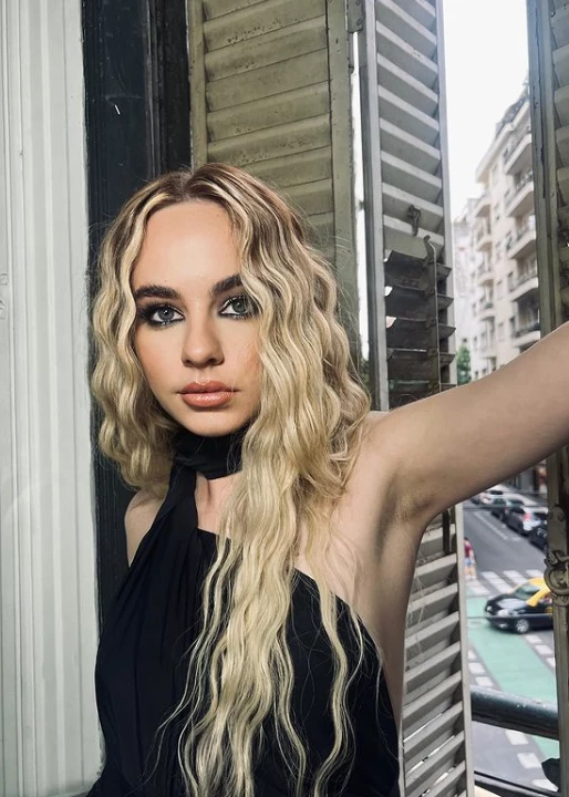 Completó su look con sandalias altas con lazo que abrazaban sus tobillos y adoptó un beauty look muy juvenil: beach waves en el pelo y ojos con smoky eyes.