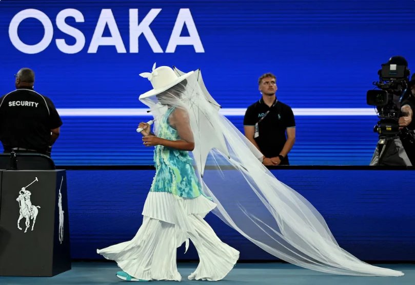 Como toque final, Osaka llevó un sombrero de ala ancha con velo blanco vaporoso y mariposas, en claro homenaje a aquel episodio viral del Abierto de Australia 2021, cuando una mariposa se posó sobre su rostro en plena competencia. Un guiño emotivo que conecta pasado, presente y memoria personal.