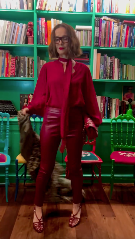La actriz optó por un llamativo conjunto que combinaba varias tonalidades de rojo con animal print, la combinación estrella de la estética MOB wife que irrumpió en 2024 y que ya varias famosas se animaron a adoptar.
