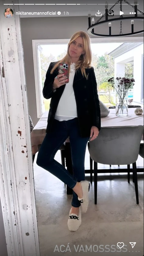 Nicole Neumann siempre sigue las tendencias en la moda y desde su cuenta de Instagram, donde tiene dos millones de seguidores, comparte a diario sus looks. En su look de hoy, llamó la atención su outfit porque apostó a un calzado muy original: los zapatos "furry". Un diseño que es un mix entre zueco, pantufla y que promete ser furor esta temporada.