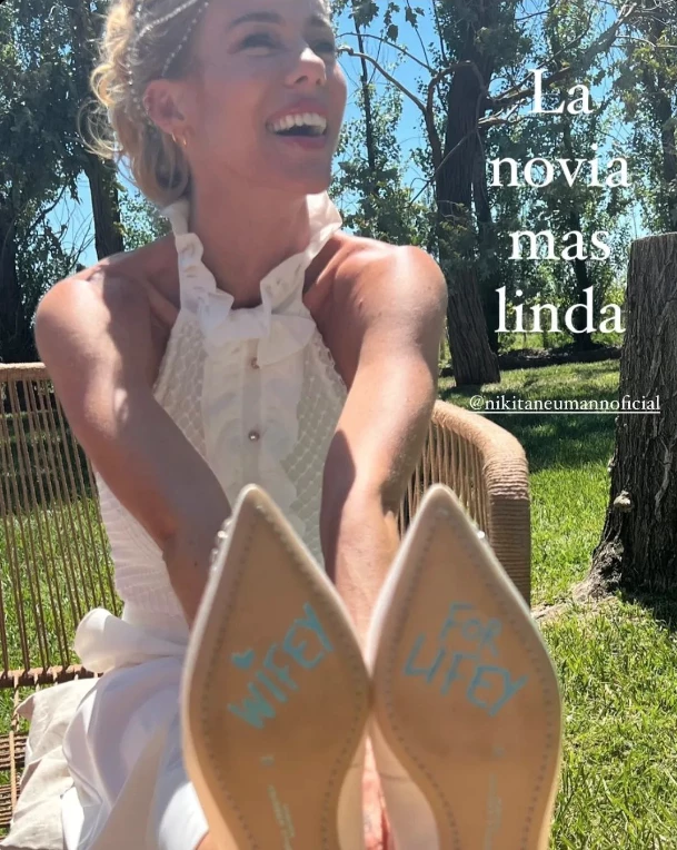 Nicole reflejó esta misma frase en la suela de sus zapatos de novia, que son de la misma diseñadora.