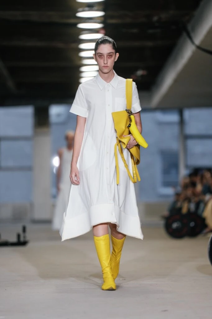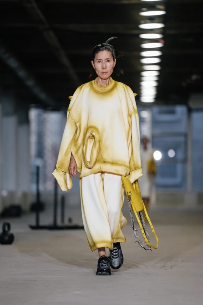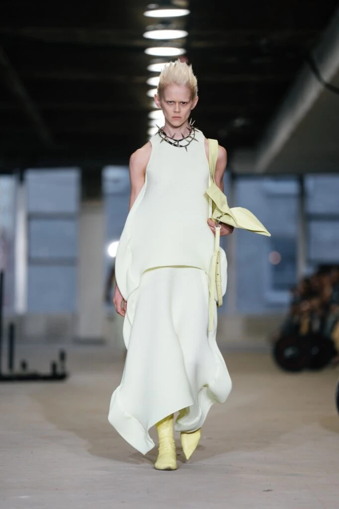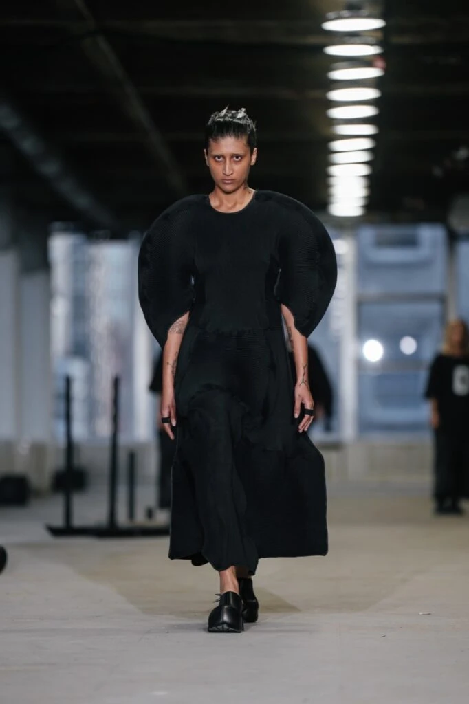 En esta presentación, la diseñadora llevó su característica estética escultural a una pasarela poco convencional y muy de vanguardia.