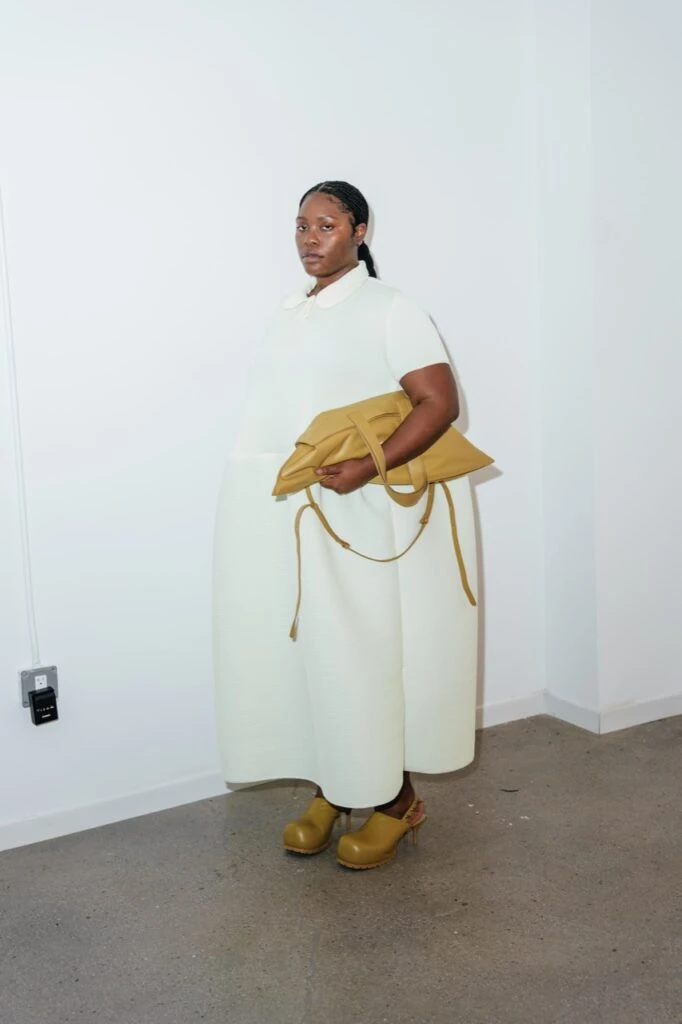 Conocida por su exploración de volúmenes audaces y siluetas expresivas, el enfoque de Baumeister redefine el cuerpo, creando un espacio que desafía las ideas convencionales de belleza y ajuste.