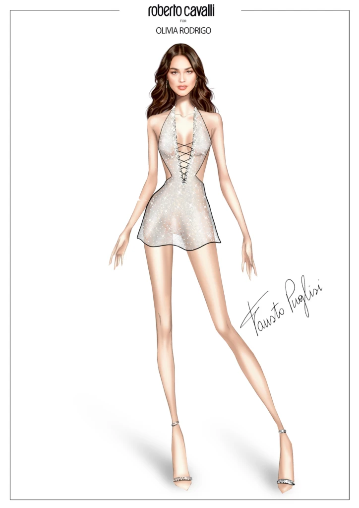Para su presentación en San Pablo, la cantante adoptó un mini vestido de Roberto Cavalli personalizado por Fausto Puglisi que destacó su estilo audaz y sofisticado, consolidándola como un ícono de la moda y la música actual.