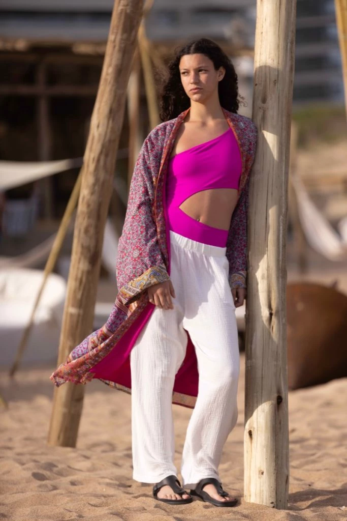 El kimono se convirtió en un básico de la valija de vacaciones ya que resuelve varios estilismos tanto para llevar en el día como en la noche. Se llevan cortos, largos, estampados, de colores alegres, lisos…