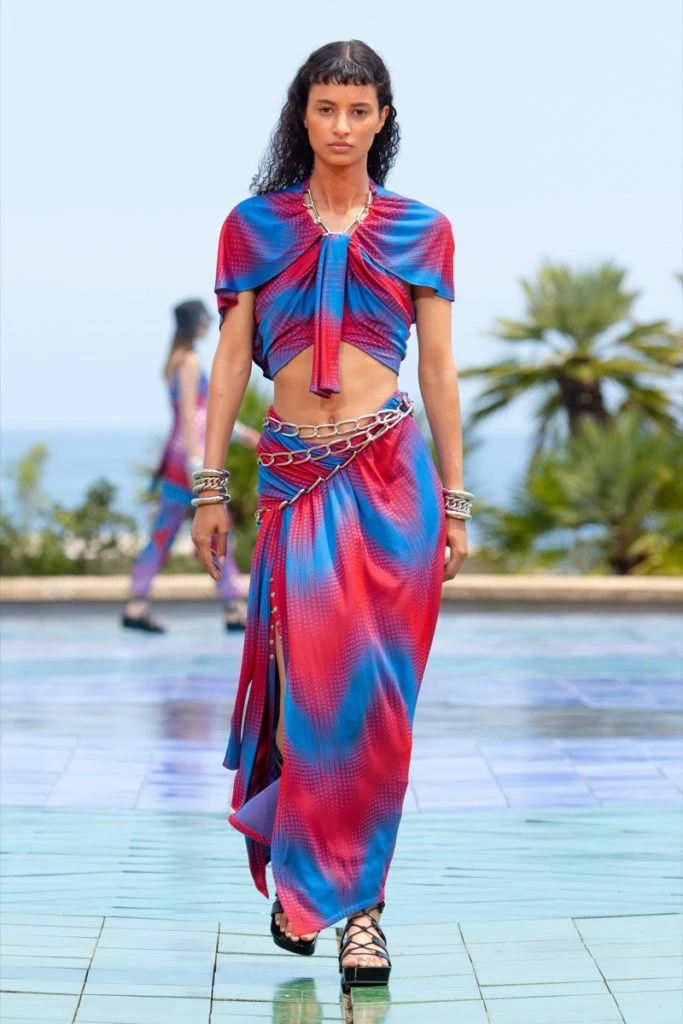 "Cuando pienso en Paco Rabanne y Vasarely, es esa sensación maravillosa de divertirse y ser sensual", dice el director creativo. "Es ligero y relajado y, al mismo tiempo, súper sofisticado, vanguardista y experimental. Me sentí como el lugar para resumir todo lo que quería expresar en la colección".