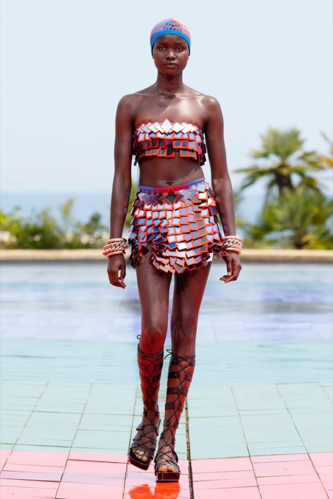 Julien Dosena, director creativo de Paco Rabanne, presentó su última colección primavera verano en el techo del Centro de Congresos de Mónaco, en Hexa Grace, con una instalación de 24.000 tejas diseñadas por el artista Victor Vasarely.