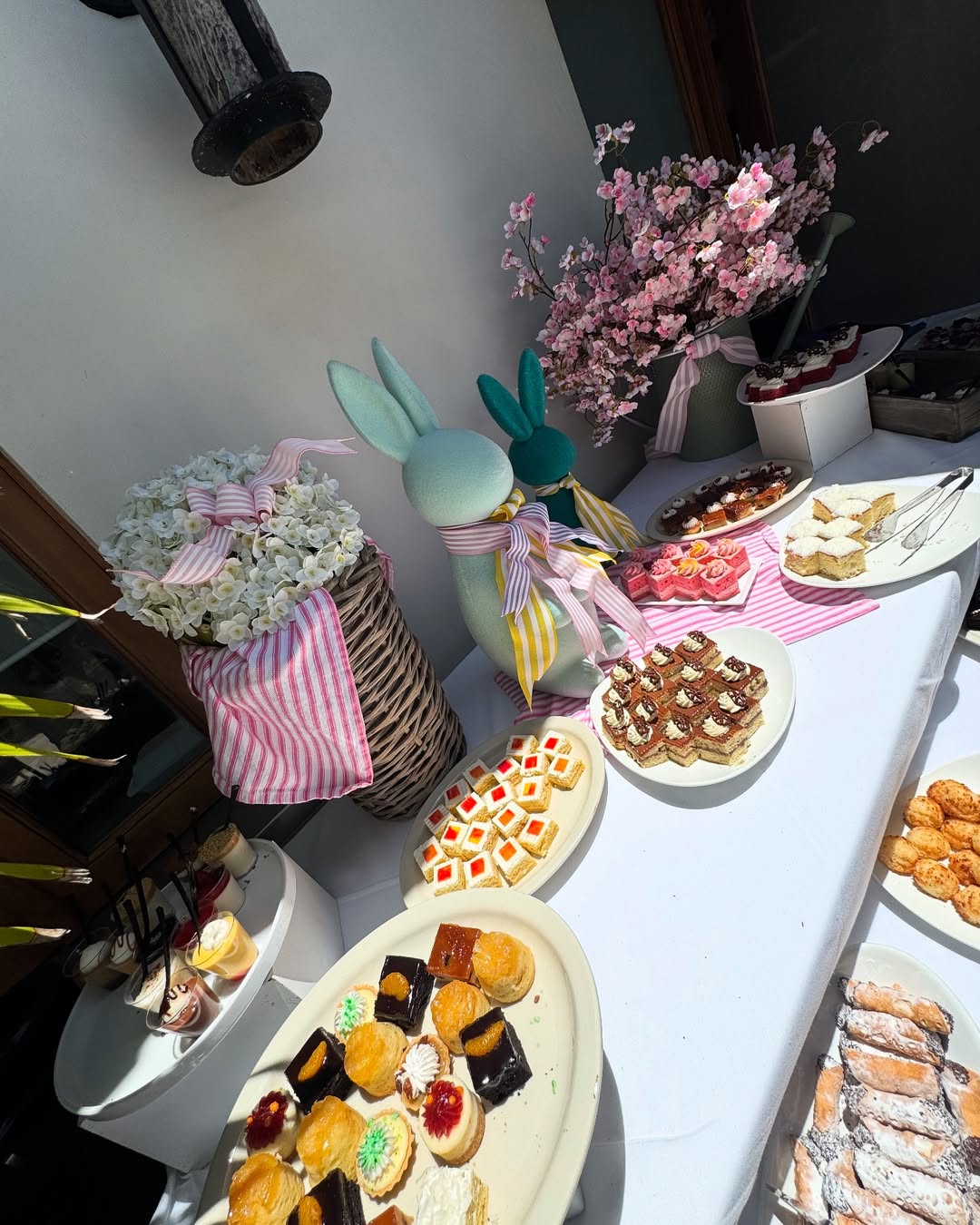 El encuentro no fue uno más: tuvo una cuidada ambientación temática por las Pascuas, con detalles de decoración, menú especial y la simpática presencia del clásico Conejo, que se sacó fotos con los invitados. En el marco de esta experiencia, Pampita también recibió un regalo personalizado: un conejo de peluche y una carta dirigida a ella como “reina”.