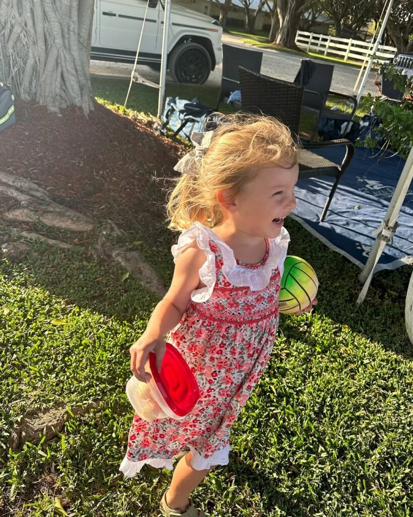 Pampita aprovechó la golden hour, el momento de la caída del sol, para sacarse fotos junto a Anita en el campo de polo de Wellington, en Florida. Y mostró cómo coordinó el look con el de su hija.