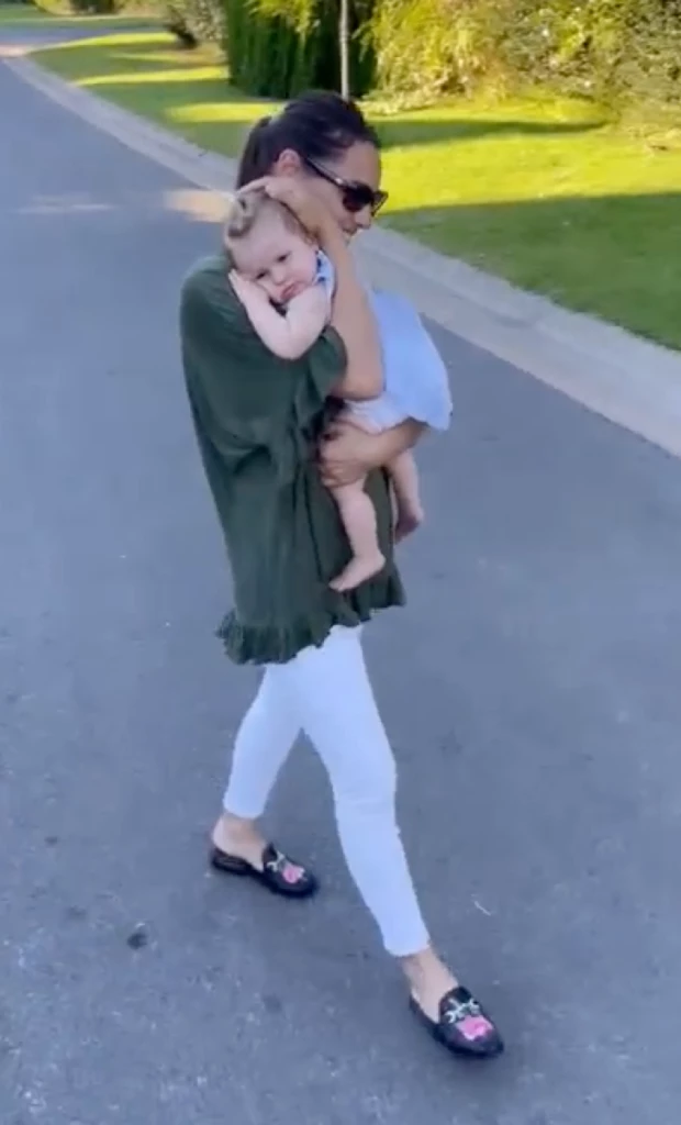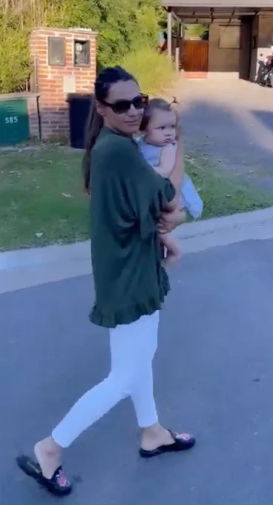 Este finde semana, Roberto García Moritan subió a sus historias de Instagram un tierno video de Pampita paseando por el barrio con Ana en sus brazos.