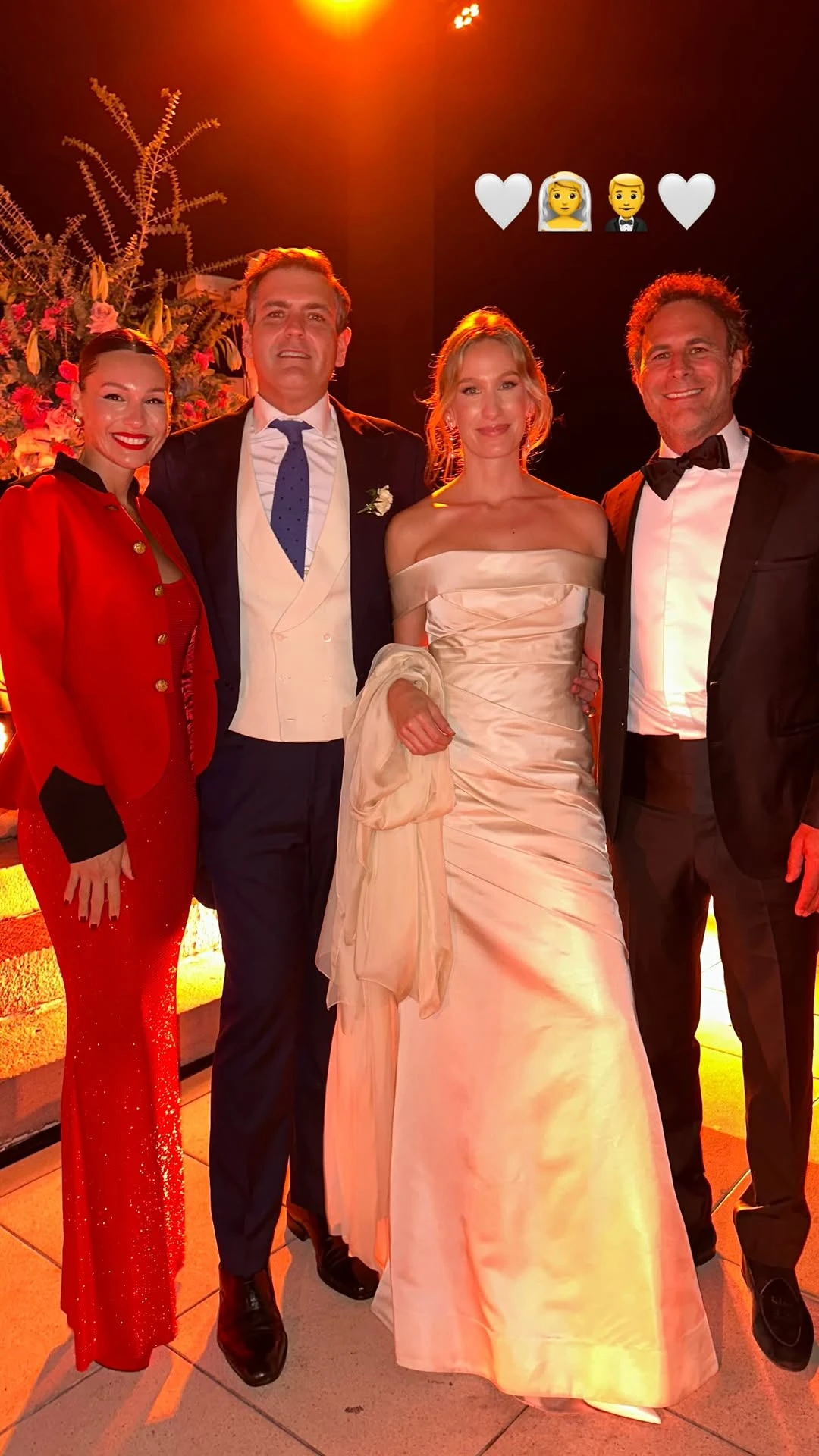 Fue el empresario y polista quien publicó la imagen en sus redes sociales, que revela que tuvieron una noche elegante que compartieron juntos. Ambos posaron abrazados frente a las escaleras de un edificio y sonrieron para la cámara. En otra imagen, la pareja posa junto a los novios.