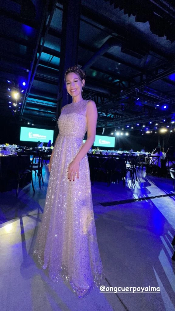 La modelo llevó un vestido rose gold con brillos y transparencias para asistir a la cena benéfica de la ONG "Cuerpo y alma" junto a su esposo, Roberto García Moritán.