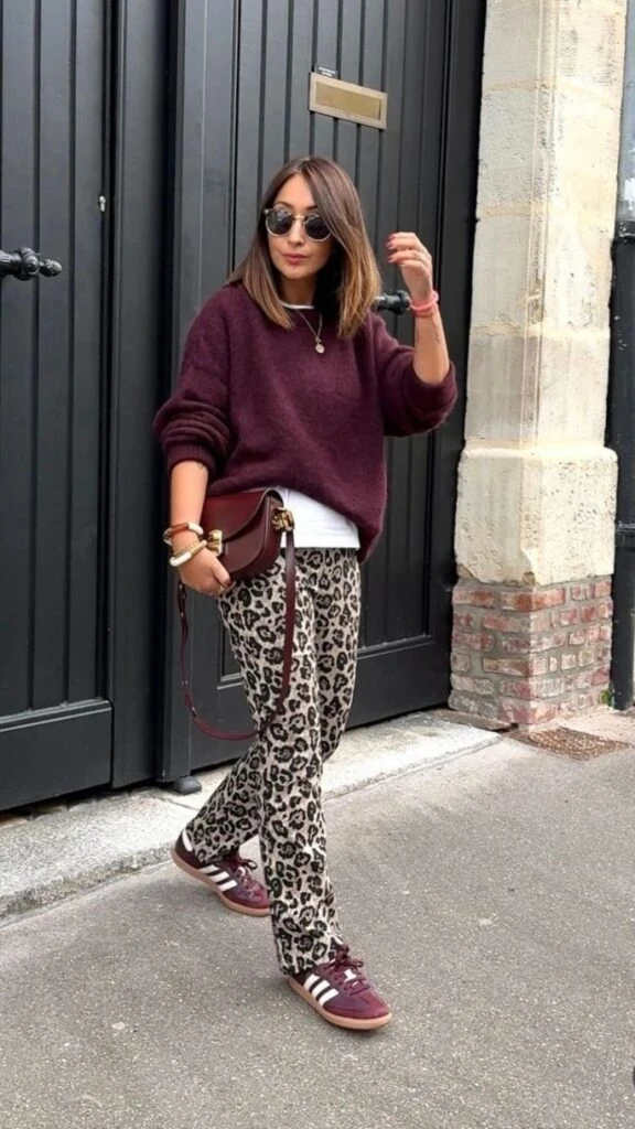 - Cherry + animal print: una dupla poderosa. El contraste entre la intensidad del rojo cereza y los tonos neutros del estampado animal (como leopardo o cebra) genera un mix audaz, moderno y con actitud fashionista