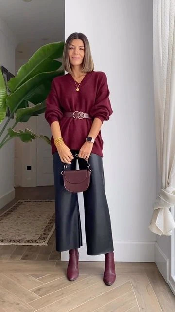 La clave para llevar el cherry con estilo es apostar por texturas lujosas como el satén, cuero, lanas o tejidos estructurados, y jugar con los accesorios: unas botas al tono, labios cherry o uñas en ese color refuerzan el impacto visual sin saturar.