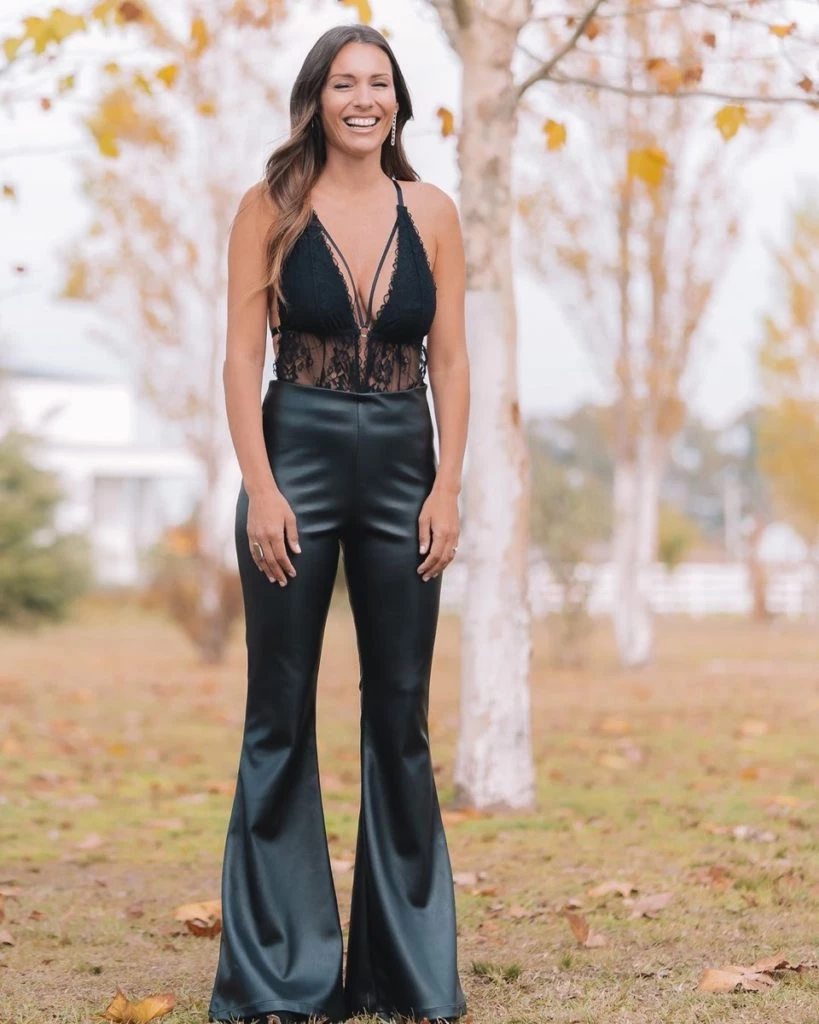 Pampita adoptó un bpdy de encaje con pantalones de cuero