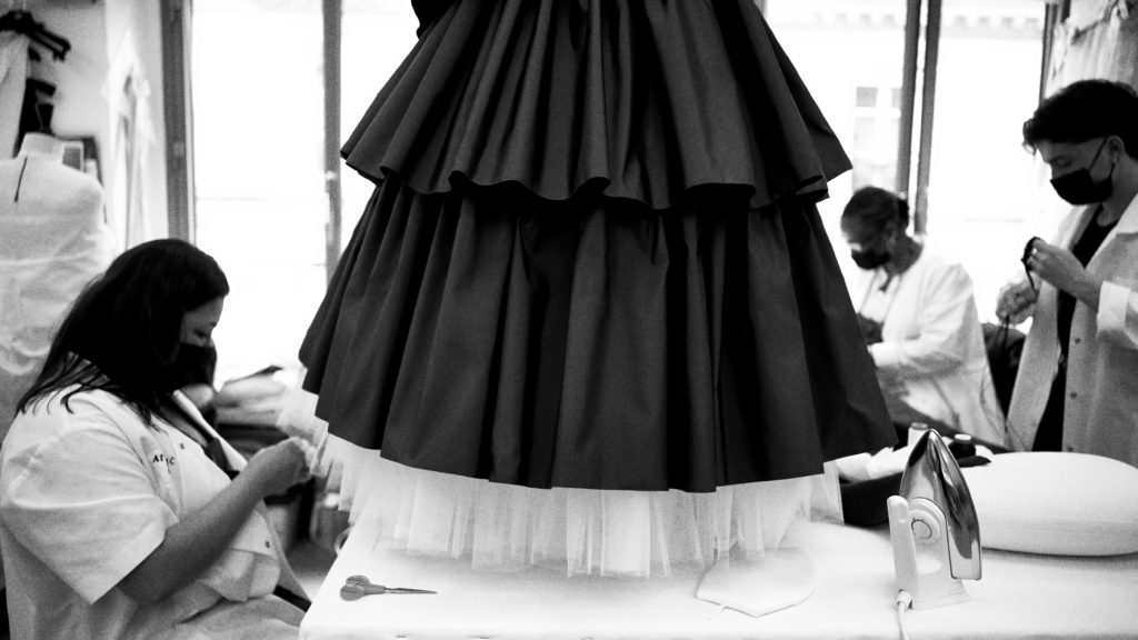 Sofia y Roman Coppola hizo y los teasers de la colección. El cortometraje protagonizado por Margaret Qualley recorre el excepcional savoir-faire de los ateliers y muestra cuando la actriz descubre los últimos preparativos de la colección imaginada por Virginie Viard.