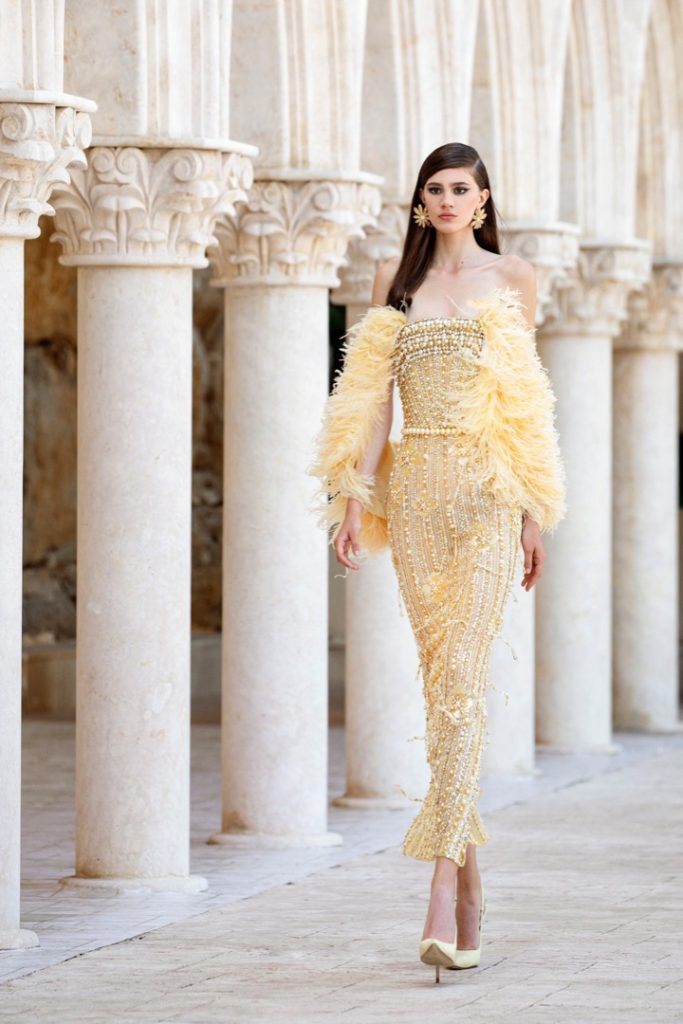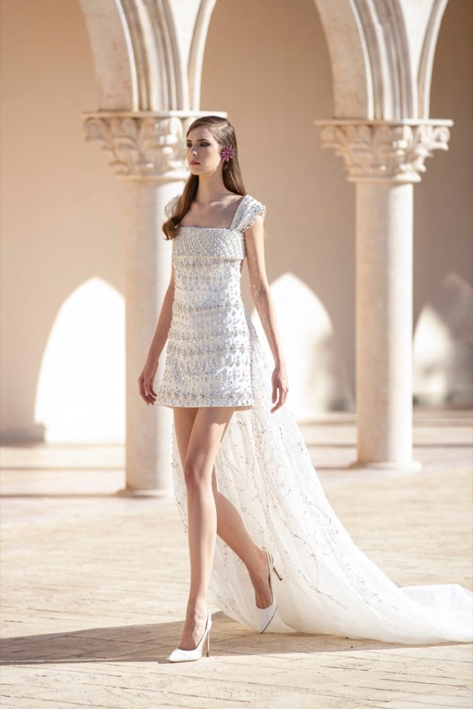 Georges Hobeika invita a la mujer a una fiesta de color, elegancia y sofisticación. Incluso, ofrece una novia romántica y clásica a la vez haciendo realidad el sueño de muchas.