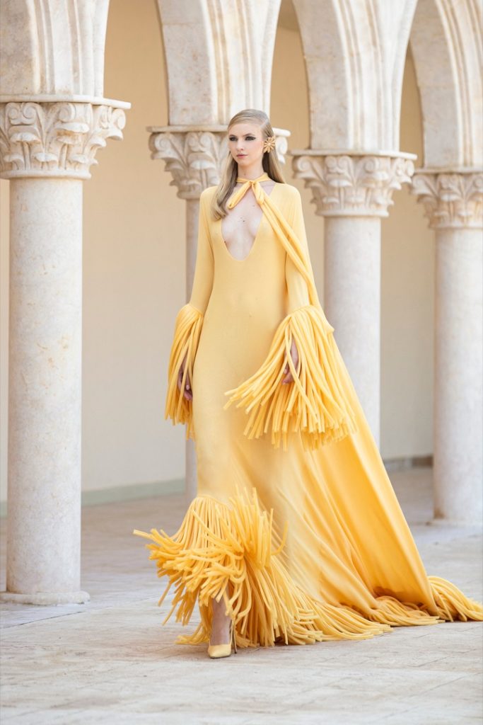 El color es protagonista de la colección, desde los tonos pasteles a los más vibrantes. En la colección también se hacen presentes sofisticados bordados sobre delicadas organzas.
